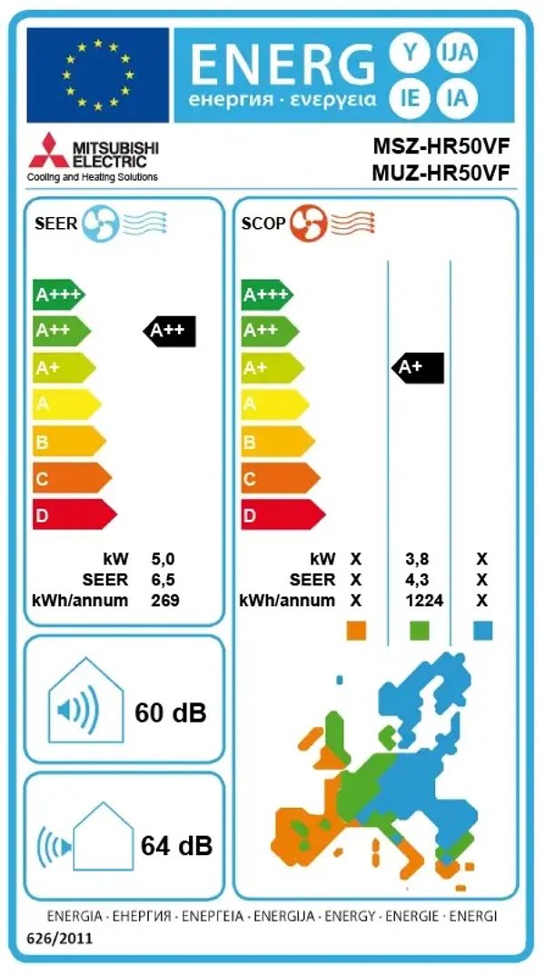 Alle Geräte erfüllen mindestens die Energieeffizienzklasse A++ (Kühlen) / A+ (Heizen).